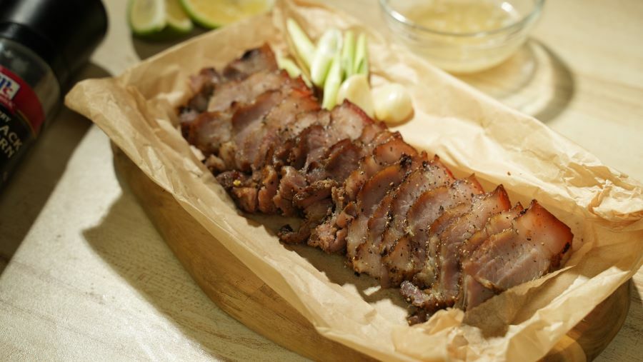 3.烤、氣炸方式:解凍後先將鹹豬肉上的醃料剝掉(不要用水沖),